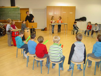 Im Musikunterricht der ersten Klassen wird neben der Klassenlehrkraft zusätzlich Herr Michael Schmidt von der Musikschule eingesetzt. Als hochqualifiziert ausgebildeter Musikpädagoge vermag er es ganz besonders, unsere Kleinen für die Musik zu begeistern. Kreativität wird hier zu einem wichtigen Bereich des Musiklernens. Unsere Kinder experimentieren mit Klängen, Rhythmen, Tönen, Sprache und Bewegung und gestalten Musik selbst. Gesponsert wird diese Zusammenarbeit mit der Musikschule Fürth vom Lions Club Fürth sowie der Raiffeisen Volksbank. Hierfür ein herzliches Dankeschön! Mehr als man in vielen Worten ausdrücken könnte, kann man in den Gesichtern unserer Erstklässler die Freude an diesem Unterricht ablesen: