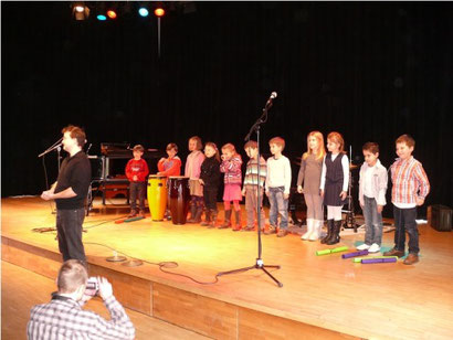 Die Klasse 1d hatte ihren ersten Auftritt vor großem Publikum in der Musikschule Fürth. Sie bildete mit zwei Beiträgen gewissermaßen die Vorgruppe für die Jazzgruppe „hot house hooters“, die dann im Anschluss kräftig Gas gab. Unsere jungen Musikanten begeisterten ebenfalls ihr Publikum und sagten auf diese Weise Dankeschön an die anwesenden Sponsoren des Lions Club Fürth sowie der Raiffeisen Volksbank. Es war aber auch ein Dankeschön an die Verantwortlichen der Musikschule Fürth, insbesondere an den Musiklehrer Michael Schmidt.